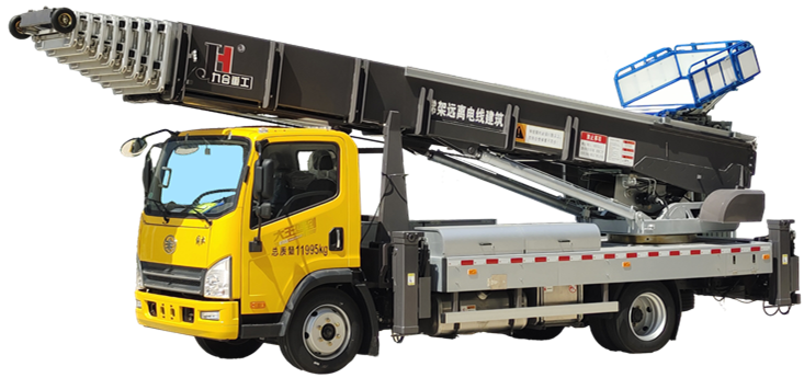 本公司55米云梯車最大作業高度55米,相當于18層樓高,新型斷面梯臂保證產品質量,最大承載貨物重量400公斤。 底盤采用重汽豪沃底盤,故障率低,可靠性高。 貨架采用新型斷面鋁合金結構形式質量可靠,安全有保證; 車輛支腿采用上海寶鋼700號高強鋼板,保證整車支撐安全。